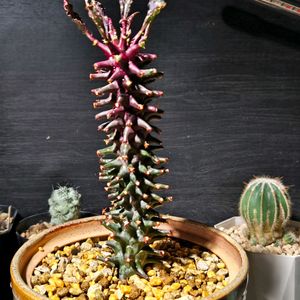 こんばんは😄 ユーフォルビア モデナニウム タンザニア レッドです。紫シューベイとも呼ばれます。 発根管理中で、あまり陽当たりさせて無いから赤みが無い😅