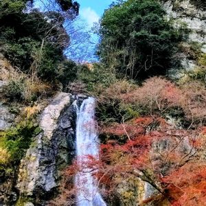 箕面の大滝 滝とモミジと青空がすてきでした。