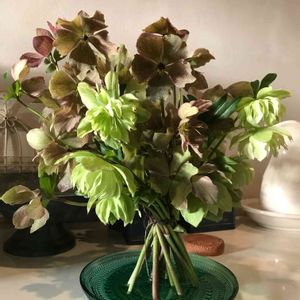 昨日の雪が嘘のような☀️ でも風が強い… クリスマスローズの花を✂️した。結構たくさんあったので、苦手なスパイラルブーケの練習してみた、、、 ちょっとアンティークな雰囲気…