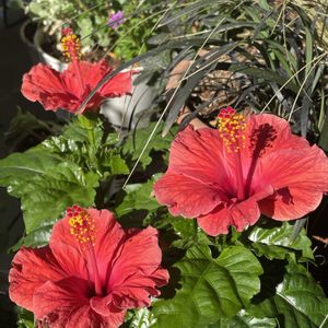 今朝のハイビスカスやお花達の様子🌺 金曜から出張&プライベートでお出かけし、その間は留守番の息子に水やりをお願いしてました。 お花は無関心、なんで俺が?感満載でしたが、チャチャっとやってくれたんでしょう、昨夜帰ってきたらハイビスカスやメカルドニアはしなしな、でもペチュニア達は大丈夫そう。 うんうん、ありがと!もっとひどい状況かなーと思ってたからね、このくらいなら何とかなるかな☺️ そして、夜な夜なみんなに活性液入りのお水をたっぷりあげました🚿 1️⃣ハイビスカスはしなしなで頭がうなだれてたけど、葉っぱシャキーン、お花も3輪咲いてくれました🌺🌺🌺✨ 2️⃣ハイビスカスとエキナセア。エキナセアはぱっと見大丈夫そうだけど、下葉が少しカリカリがちょい心配かな。 3️⃣もう1鉢のハイビスカスも、葉っぱシャキーンと復活。大きな蕾…とよく見たら終わったお花🥀。小さい蕾は明日か明後日咲くかな〜☺️ 4️⃣手摺近くの皆さん。こちらもうなだれてた子いたけど、ほぼ元気そう。pic下のしなしなはアリッサム。左下のクローバーもしなしな。これはちょっと厳しいか💦 5️⃣多肉にはお水あげないでハーブはあげてね、とお願いしてた室外機の上。バジル好きだからあげてくれたかな。元気そう🌿 真夏のお出かけの結果、こんな感じでした〜。 窓開けるだけで暑いのに、母の趣味に付き合わされて、マジめんどーと思ってたに違いない💦 ホントありがとう。感謝感謝🙏💕