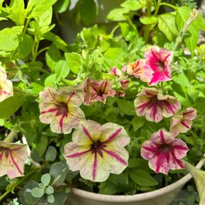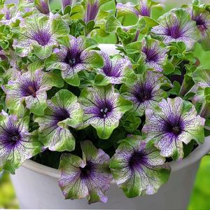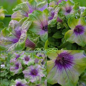 おはようございます😊☀ ①② ☆ペチュニア☆ アマゾナス プラムコカトゥ ライムグリーン💚に 💜の筋模様が入る ユニークな子 爽やかで ステキな花色デス💚💜 早咲き品種で 期待どおりのこんもりと お花もギュウギュウ😆 (◍¯﹀¯◍)〜⁼³₌₃♡マンゾク♡ .𓈒𓂂𓏲܀.𓈒𓂂𓏲܀.𓈒𓂂𓏲܀.𓈒𓂂𓏲܀.𓈒𓂂𓏲܀ ☺︎にっこりにちようび☺︎ ︎ ステキな一日に なりますように🤗💚☘️⁺.˖*