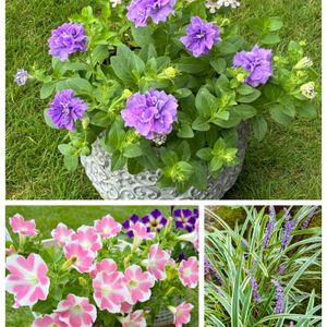 ↑去年お迎えした八重咲きの ペチュニア💜 白い子は冬越し失敗 してしまいましたが、この子は無事 今年も咲いてくれてます。挿し芽でも良く増えて、あちこちの鉢に… ↙︎今年お迎えしたペチュニアさんは 調子がイマイチで🌟になりかけてましたが最近やっと復活の兆しが… ↘︎地植えの斑入りヤブランが 地味に咲き始めました😌😄