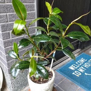 フィカス エラスティカ メラニー ドワーフ = 矮性メラニー種のインドゴムの木 古くからの園芸種は改良が進んで細分化が進んでますね……難しい事はともかく、赤みを帯びたツヤツヤの葉っぱ、、カワイイ🥰