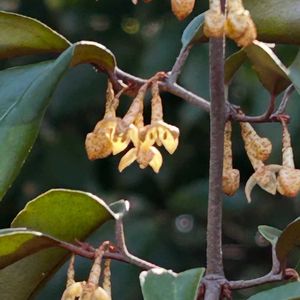 『ツルグミ』 初めて見つけました🙏💕 いつも、時々 観察に行く場所 色々な草花の様子を 見に行きますが…👀 あれあれ⁉️ 見た事がない花が… 早速、アプリで名前を探すと🔍 『ツルグミ』 通常のグミは花は4月頃開花 6、7月に実がなりますが こちらのツルグミは 12〜2月に開花 3、4月に実がなります‼️ ツル状の枝がなります‼️