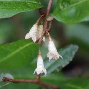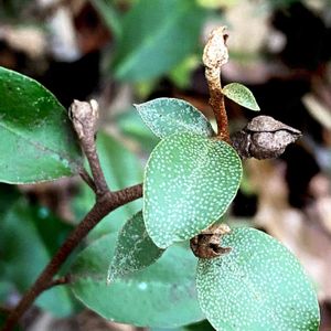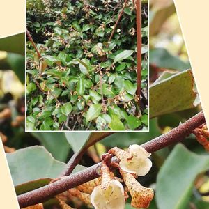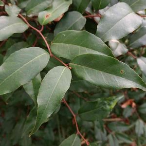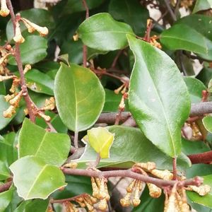 ツルグミ グミ科•属 本州(関東地方以西)〜九州、台湾 常緑つる性 刺は無い 小枝は下向きに伸び他の樹木に絡み付き縦横に成長する 葉の裏表を見れば同定出来る 表は濃緑色。裏側は赤褐色に緑色が混じり金緑色に見える 果実は美味しくは無い。