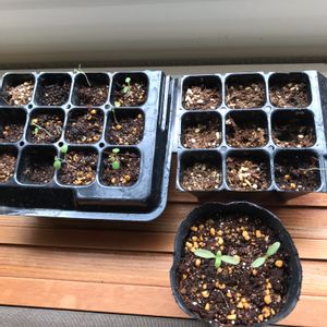 種まき結果発表(*≧∀≦*)!! 5月11日から2カ月程経ってしまいました💦 メルカリで購入の千日紅・初雪草・オダマキ3種です! 発芽率No.1 は初雪草✨ダントツです!! 初雪草は直まきが一番でした(*´꒳`*)✨ 3個を1個の穴に入れていきましたが、全ての穴から発芽(≧∀≦)💕 ポットに植えた子は水切れでお亡くなりに(*゚∀゚*) 続いて千日紅エレスチャル✨ 外のポットから1芽。 中のポットから4芽。 そのうち2芽は子供が倒してさよなら〜(・∀・) 湿らせた新聞でおおって 湿度を保つようにしたポットのみ発芽✨ 撒いただけのポットは中でも外でも発芽せず💦 オダマキはいろいろ試しました。 室内でポット蒔きの子と、 湿らせたティッシュに置いて お弁当のソース用のケースに入れた子。 結果、ポットからの発芽が1番!! 湿らせた新聞と土は大事です✨すぐ乾くから霧吹き常駐! ある程度育ってからこのトレイに移しました! お弁当ケースの方は、タネが割れたら土に移す作戦! でもそこからが芽に育たない( ̄∀ ̄) 内訳は ポット蒔き 10芽。 プラケース蒔き 2芽。 うち、生き残りは6芽(*´ー`*) 小さいからちょっとしたことで、すぐ枯れます、、 悲しいのは、同じ出品者さんから購入した 濃いピンクと水色のオダマキは2芽しか発芽しなかったこと(´;Д;`) その2芽も発芽後に枯れてしまい、 今は別購入のサーモンピンクのみです(*´ω`*) いや、それだけ育っただけでもヨシとしましょう(*≧∀≦*)💕 しかし、皆さんもご注意ください!! メルカリ購入時、コメントのやり取りがありますが、とても冷ややかな対応の方から買った種だけ芽が出ません💦 また、いつ採取したものか確認することが大切です! 芽がでたオダマキは去年採取と明記してありました✨ それも含めて、勉強やねー( ´∀`)というテンションで購入されることをオススメします!! やっと報告できてよかった(о´∀`о)✨