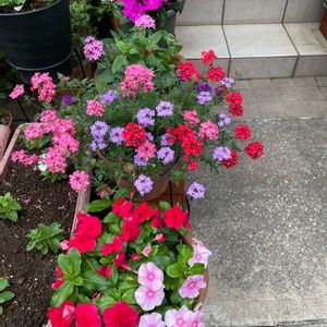 花壇を夏の花に植え替えました❣️ この辺は何故か同じ色合いになってしまいました💦 後々また考えよう( ˆ꒳ˆ; )