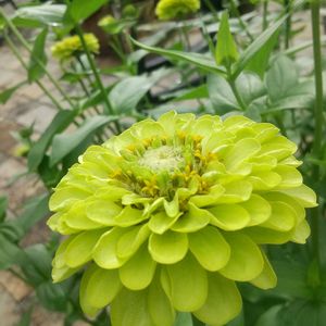 雨が止んで,蒸し暑くなってきました💦 黄緑色のお花が好き💚 ジニア ジャイアントライム