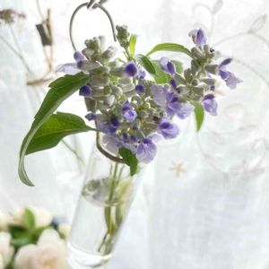 白っぽい蕾から水色のお花が咲く 大好きな夏のお花です💠🌿 小さかった苗が今はわさわさ🌿🌿🌿 100均グッズでぶら下げる花器つくったので生けてみました♡ サルビア ファリナセア サリーファン