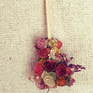 久しぶりの投稿です💕 小さい箒にドライをアレンジしてみたよ🎶🥰😘 可愛くできたかな❓😊❣️