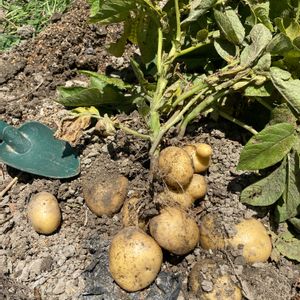 十勝こがねを全部収穫しました。十勝こがねらしい大型のいもがたくさん収穫できています。