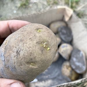 じゃがいも発芽の様子。キタアカリ以外もポツポツと芽が出てきてます。