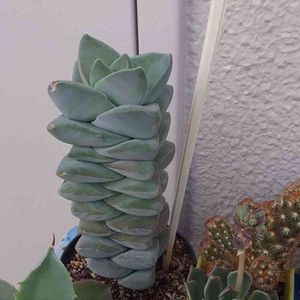 2年前に琵琶湖水生公園の多肉植物展で、お迎えしたクラッスラ紀の川。 大きくなったはいいけど、何時も傾いてるので、とうとう支柱のお世話に(*´-`)