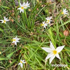 ご近所のクロホシオオアマナ🤍 そのままブーケにできそうな可愛さ💕 ②毎年出てくるニワゼキショウ ③ニワゼキショウより小さなセッカニワゼキショウ