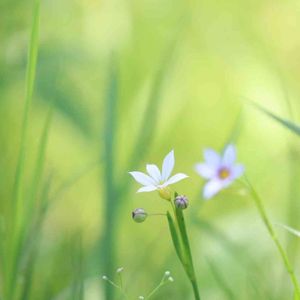 セッカニワゼキショウ(雪花庭石菖、コニワゼキショウ) 雨の中で開く