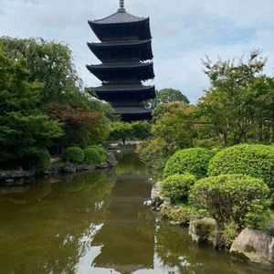 お疲れ様です。\(//∇//)\ 真言宗総本山東寺です。 蓮の花が今見頃です。奥に見えるのが 国宝五重塔です。 追伸、蓮🪷池は拝観無料です。 朝早く行くのをおすすめします。👍👍