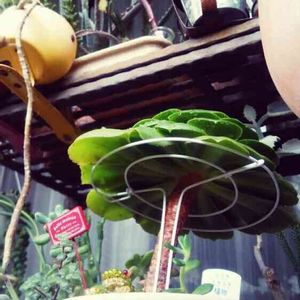 たびたび登場の、アエオニウム「やたの鏡」。 綺麗な葉っぱに仕立てるため、こんなイイもの発見しました♪ 菊じゃないけど・・・。 下の葉の、クルンとする癖を阻止してくれます♪