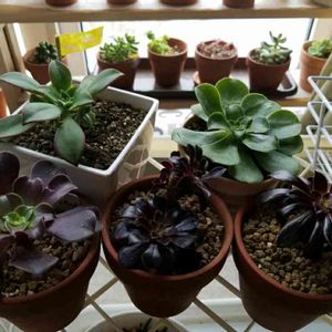 昨日のアエオニウムに続けて 最近丸くなりつつあるアエオニウム 一番右の一番上のはダイソーで買った名無し 黒くならないので、まだら黒法師かな? 一番右の一番下は セディフォニウムhbって名前で購入したやつ 前に誰かのブログで ブロンズメダルになってるらしい…とか? う~ん そこらへんは詳しい人にお聞きしたいなぁ…