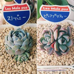皆さんの投稿に出てくる可愛いネームプレート。気になりググる✨ LeaMalapua… 「うわ~宝石箱や~」 でも、初心者🔰には手は出せない… でもブルーサプライズに一目惚れしてしまいました💕 ちょうど、サイトupした直後だったらしく、さすがに高級苗はやめてこの4点、購入💕 スノーバニーは売り切れで諦めました。