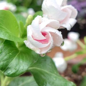 雨上がりのビンカmiki🌺 猛暑の日々はお休みして、最近やっと咲きだしてくれた🤗