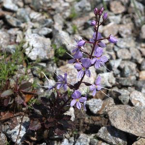💠 初夏の山野草 💠 『 夕張クワガタ(エゾミヤマクワガタ) 』 連日の20℃超えの暑さで開花💜 花色は薄紫で、葉裏は銅葉がかりです。 ( 今朝 撮影 )