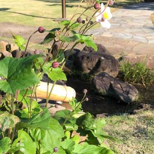 秋晴れの本日は息子のお昼にあわせてコンビニおにぎりと唐揚げを公園で食べデザートの大福はいつもの場所で。 鹿威しを興味深く見るようになった息子。近くに蕾の可愛い子を発見。 どなつか名前が分かる方いらっしゃればお願いします。