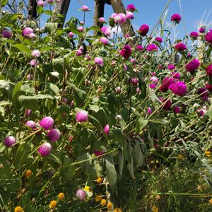 こんにちは〜😊 買い物先 駅前の花壇で 千日紅が綺麗に咲いていました💕