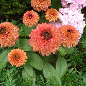 こんにちは😊 買い物先、駅前の花壇にて ダリアであってますでしょうか❓ 紫陽花をバックに綺麗でした💕 「ジニア」と教えて頂きました。ありがとうございました🤗