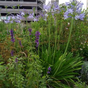 駅前の花壇で リュウノヒゲの小さな花が咲いていました🤗