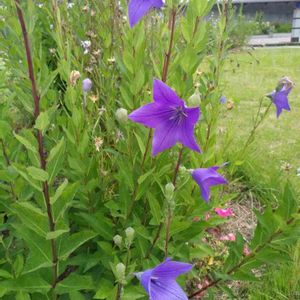 こんにちは😊 駅前の花壇にて 桔梗が綺麗でした💕