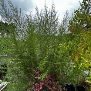 ユーパトリウム グリーンフェザー🌿が 今年も すくすくと 伸びてます 横の 南天の蕾も たくさんです 去年は あっという間に 実を 食べられてしまいました🐦️ 黄緑色の葉は ジャスミンです