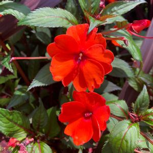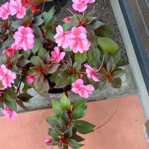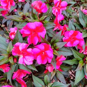 《ニューギニアインパチェンス》 (アフリカホウセンカ)の仲間🤭🌸 鮮やかな花色と、葉に斑が入る品種があるなど、観賞価値の高い植物です🤭🌸 インパチェンス(アフリカホウセンカ)の仲間で、原種はニューギニアの高冷地に自生しています🤭🌼
