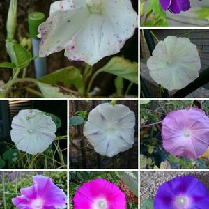 お早うございます。 今朝の朝顔10種類咲きました。 丸葉系と、変化朝顔