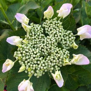 おはようございます😃 予報外れの朝からの雨☔️ 紫陽花は雨が似合います🎶 今朝の我が家の紫陽花です。 右はかれこれ8年くらいの株です。 そろそろ、株の更新をしないと花芽と葉が時間が経つと状態が悪くなります。 左の2つは2年生。 斑入り葉が気に入ったガクアジサイ。 ピンクアジサイ。