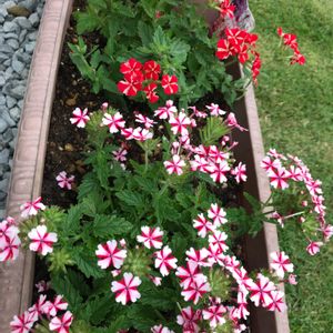 おはようございます😊☀️玄関前の小さな花壇に 🍀バーベナ ピンクポップ🍀 🍀バーベナ ライナ アップルグリーン🍀 を植えてみました😃🎶 ゴールデンウィークに植えた花✾ですが、だいぶふっくら大きくなりました🤗🌸🌼🌸🌼🐝 花の濃淡も楽しめて、花が中心にも上がるので、こんもり型になるのが楽しみです(*^^*)🎶