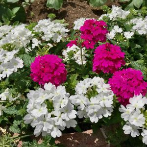💗🤍バーベナ🤍💗 昨年、挿し芽をした紅白のお花🌸✨ 極小ジャガイモ畑🥔の片隅で モリモリ咲いています💕スゴッ ジャガイモの領域に じわじわ迫る勢いなんですがぁ💦 どうしよ( *´艸`)♡︎ʾʾ GWも今日までですね〜 素敵な休日をお過ごしください♥︎︎∗︎*゚
