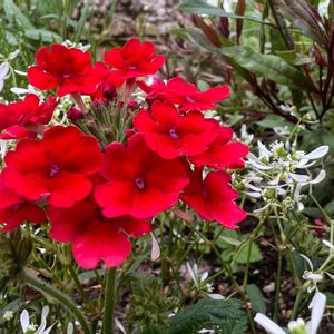 おはようございます♡ 真っ赤なバーベナかな? 公園に目を惹く子が…😍 探してるけどなかなか会えない❤️ 真っ赤な子(♡˙³˙)