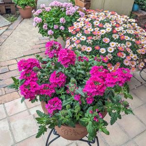 ✨バーベナ✨ハリケーン✨ 沢山さいています お迎えして枝がのびたら 2本は挿し木をします なので3鉢あります😁 明日は雨☔️なので今日が一番綺麗かな🥰