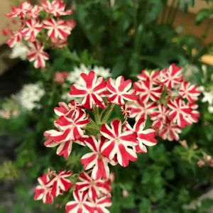 なぜか和模様のようなバーベナさん 紅白の色に一目惚れ❤️🤍❤️ ほんと可愛いです🥰 玄関にて待機中❣️ 今日も一日お疲れ様でした‥‥。 お休みなさい🌙✨✨