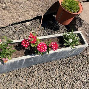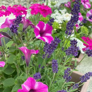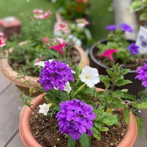植え替え完了☺👍 今年は、涼しげカラーの組み合わせにしました🎐 買ったばかりの苗を摘芯しているので、花は楽しめていませんが大きく育って花が沢山咲く姿が楽しみです🎶