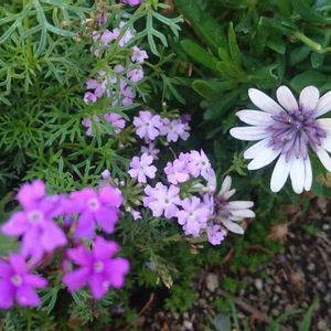 ダブルオステオスペルマムと種こぼれのバーベナ2色… バーベナはあちこちで増えてる(笑)
