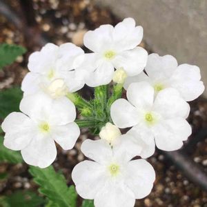 バーベナ 絢 真っ白に、グリーンアイが😍 まだ植えたばかりですか、花茎がしっかりしていてボリュームが出そうなので期待大です💕