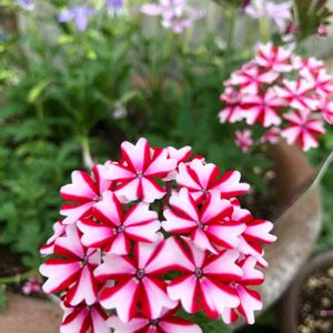 バーベナ ラナイ キャンディケーン うどん粉病に強い大輪咲きハイパーバーベナ←ラベルを棒読み🤣🤣🤣 とってもかわいい〜💕💕💕 テマリ見たいです✨✨✨ 次々に咲いてくれるお利口さん😍😍 ただし、ラベルには一年草と書いてあります💦💦耐寒温度は5度まで…😭 秋までたくさん咲いてもらいましょう😆