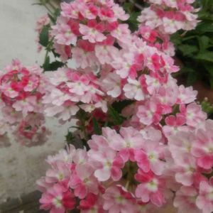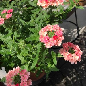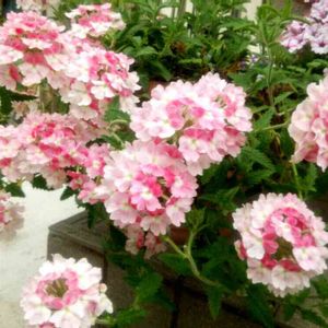 可愛く開花してるってかいたバーベナ『ピンクパフェ』こんな感じ❤ 次々と蕾をつけて開花も次々として可愛い😆 前アパートベランダで育てた頃は、うどん粉病になってダメだったけど💦庭だと育てやすい✨