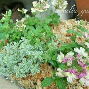 バーベナ・ラナイ・ヴィンテージ・ウォッカと斑入りのシレネをワイヤーかごに寄せ植えしました(*´∀`*)ノ✨✨✨