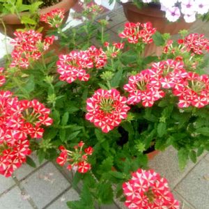 春先に買ったピンクのバーベナ『ピンクパフェ』が今の我が家にあってるらしく、たくさんお花咲いて可愛いから❤ 別な色も育てたくなって赤ストライプも仲間入りさせました✨