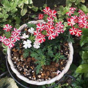 バーベナ 虫の被害に合いやすいので、地植えにはせず鉢植えに。 2色の小さな花が可愛い♪