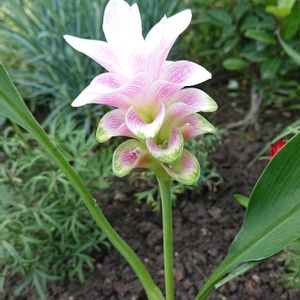 クルクマ チェリープリンセスデーン 植えてみました3。 初めて育てる植物です。たくさん咲くとキレイかも。「クルクマ」タグを辿ってみたけど、ほとんどが切り花ですね。群生してるのを見てみたい。