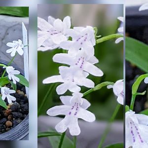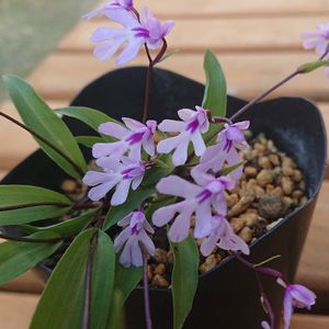 おはようございます🌱🌸 長年育てている岩千鳥🌱🌸 日本固有の小さな野生蘭です🌱🌸 日本固有と言っても本州中部以西と四国と九州の一部の山間部の岩場のくぼみ等に生息🌱🌸 ①~③軽石植え ④プラ鉢植え ⑤いつの間にか苔まみれ😅