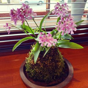 カフェのお客様が丹精込めた苔玉の岩ちどりを持ってきて下さいました。お店のカウンター席に飾りました。とっても可愛いお花です。
